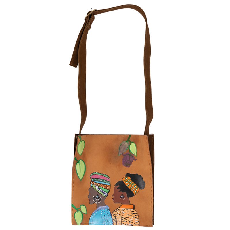 شنطة كتف جلد طبيعي برسم يدوياً