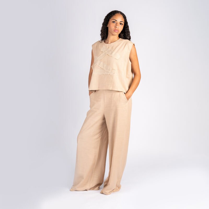 سوت كتان 3 قطع برسم يدوياً